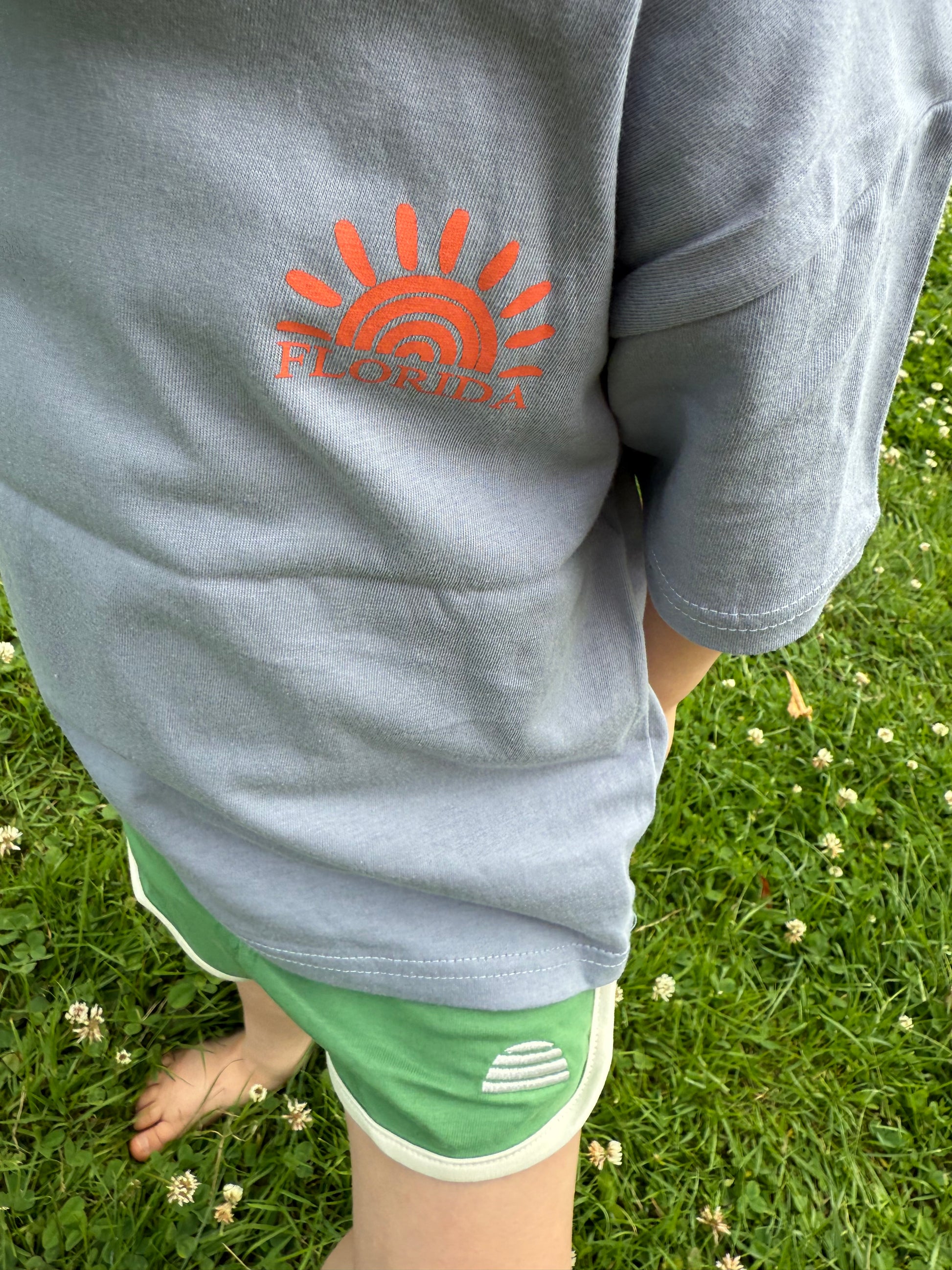 - grey tee with print on the back