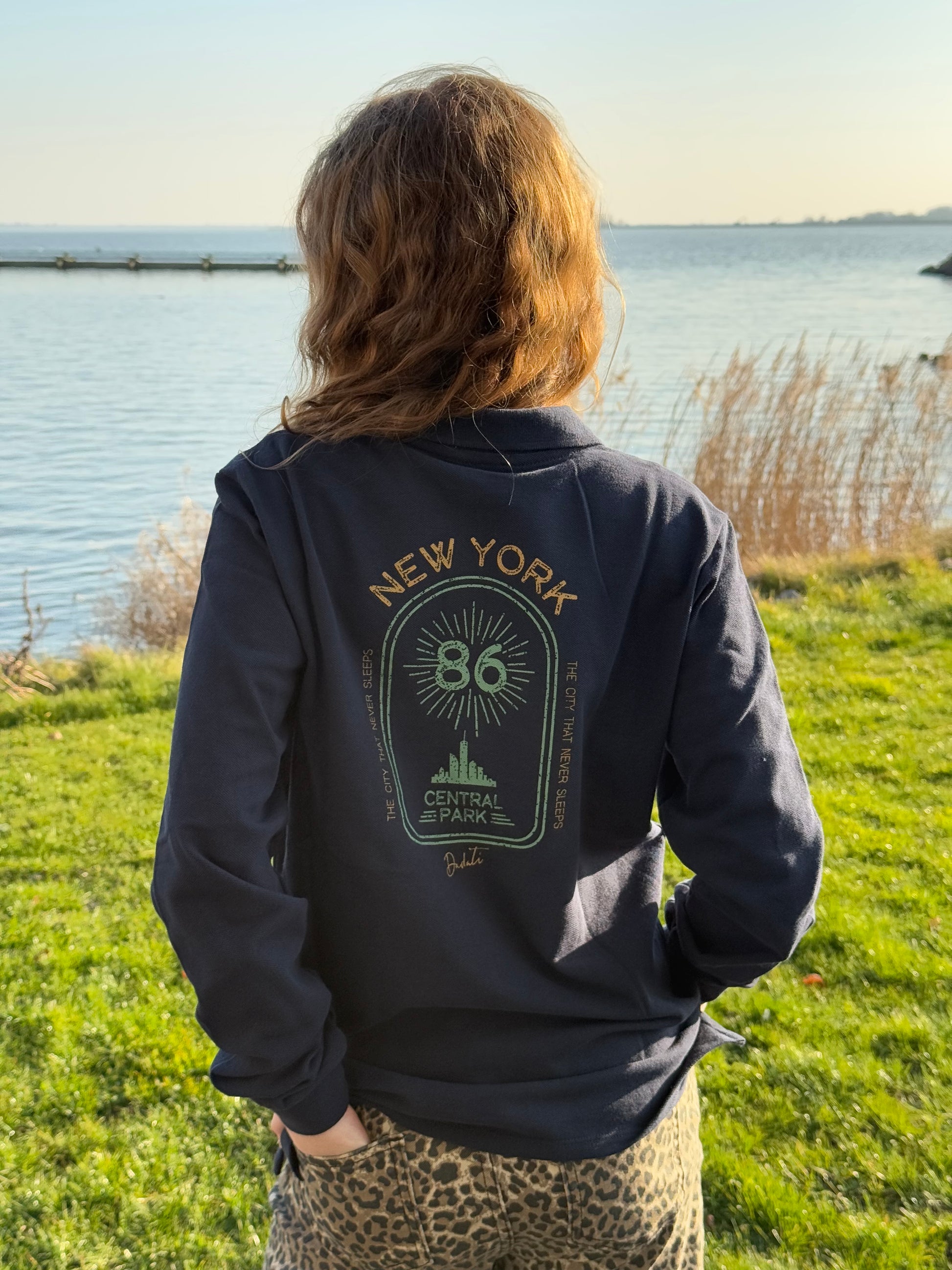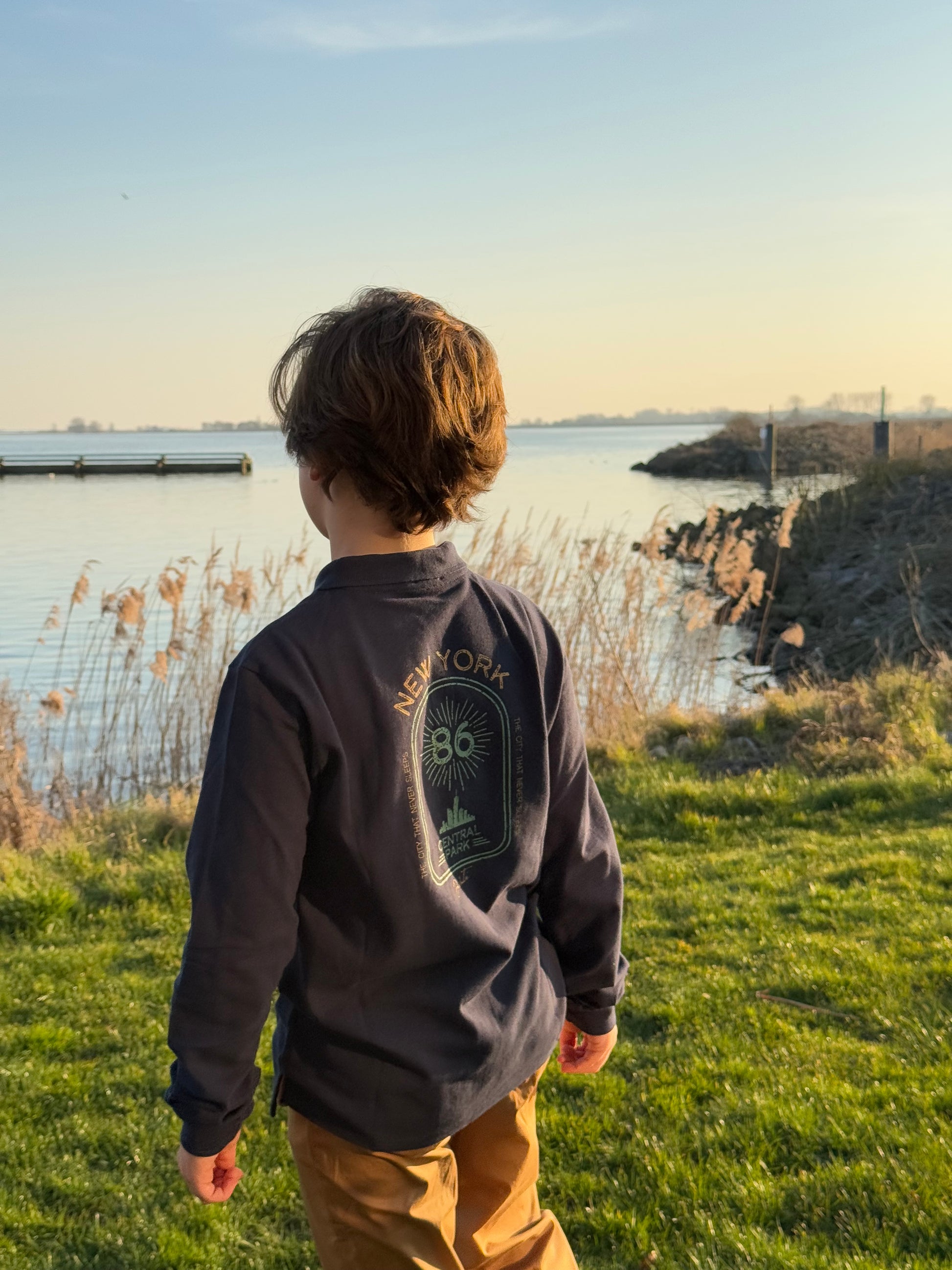 - navy long sleeve polo